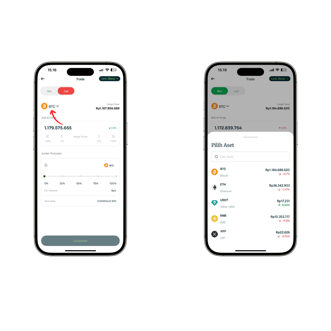 Enter Asset Amount, specify the number of coins or Rupiah amount you want to transact. For faster input, you can also slide the slider for percentage of your balance (e.g., 25%, 50%, or 100%).