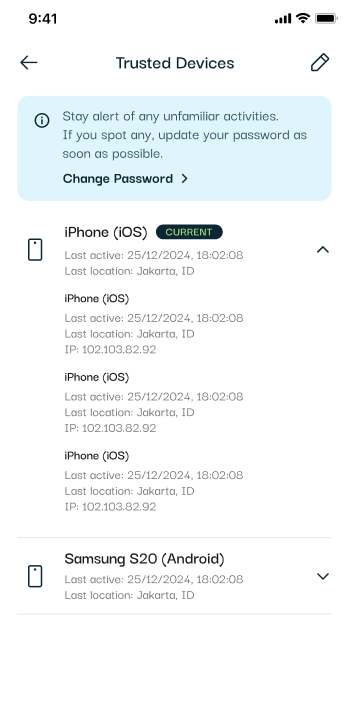 - Klik menu trusted devices.