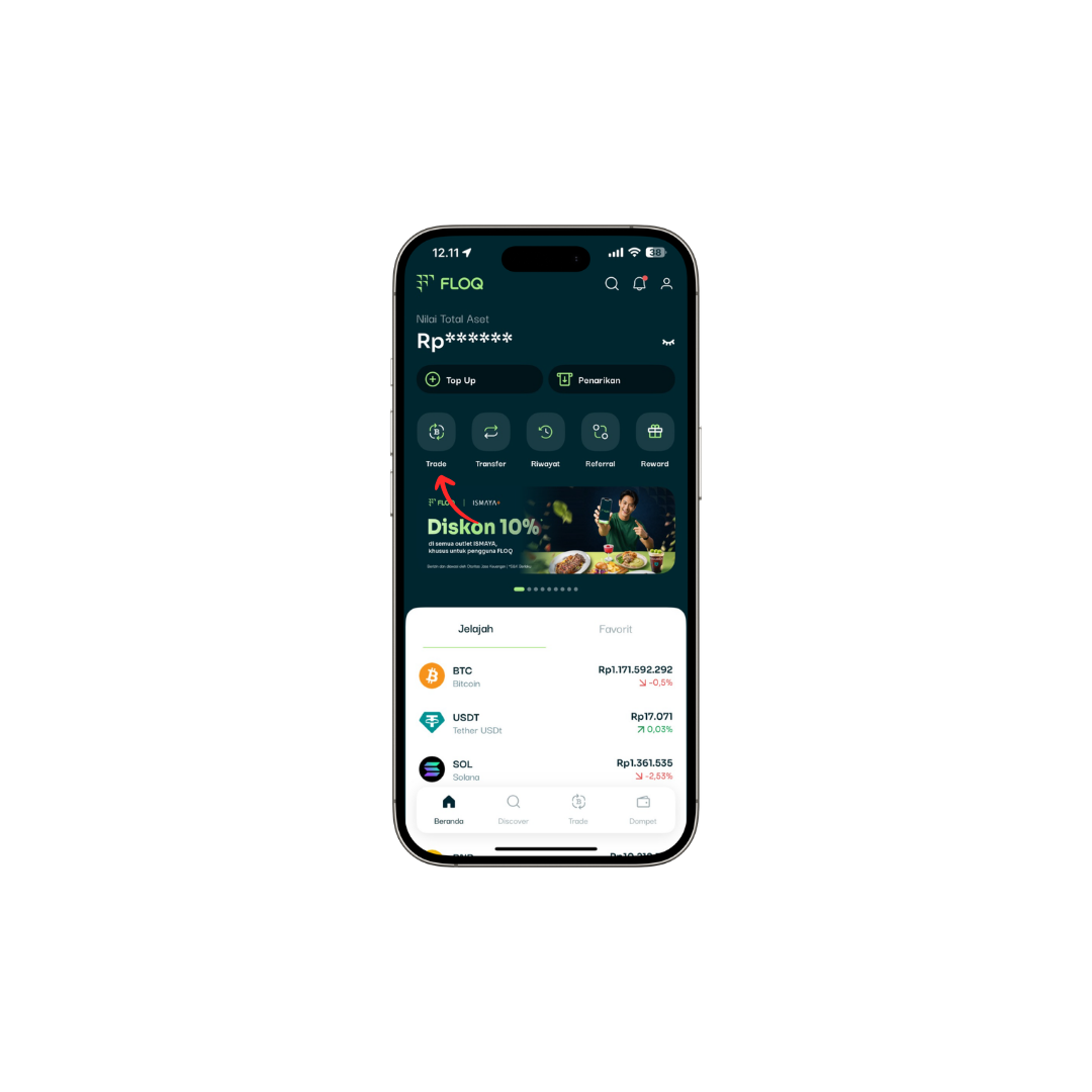 Buka halaman utama aplikasi FLOQ , pilih menu "Trade"